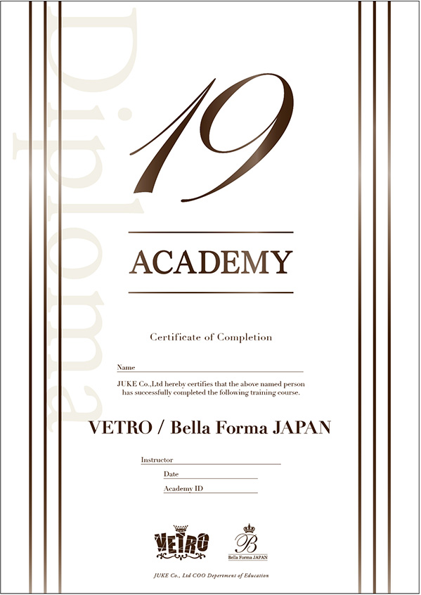 VETRO/BellaForma JAPANコース受講後、19 Storeにて対象商品がいつでも最大20%オフ! - 認定